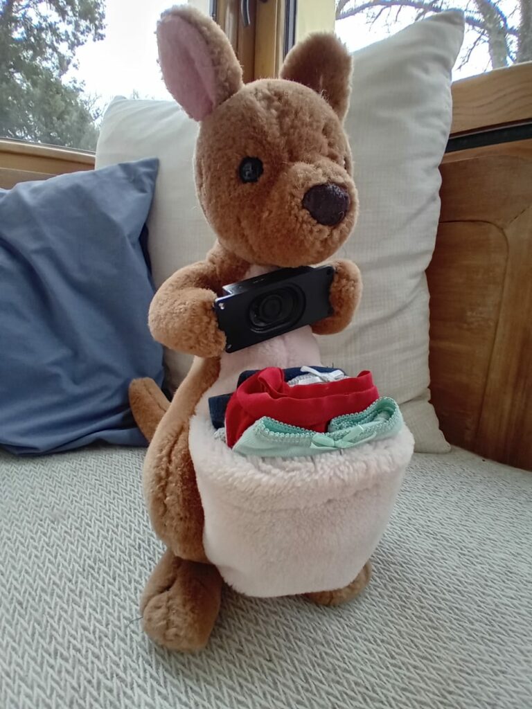 Le modèle initial a été repris et adapté par une des membres du groupe qui en a fait un kangourou conteur d’histoires créées et contées par elle et sa famille.