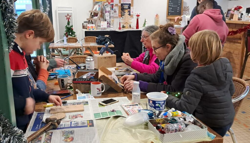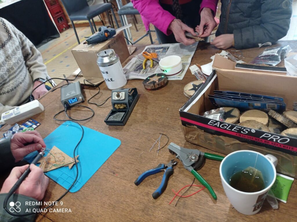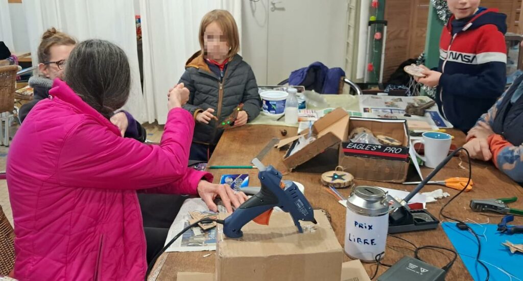 Le 17 décembre 2025, à temps pour Noël, la Vilaine bidouille a animé un atelier à la Redonnerie. 3 adultes et 2 enfants ont fabriqué des étoiles de Noël qu’ils ont emportées chez eux. L’atelier était animé par des membres du groupe.